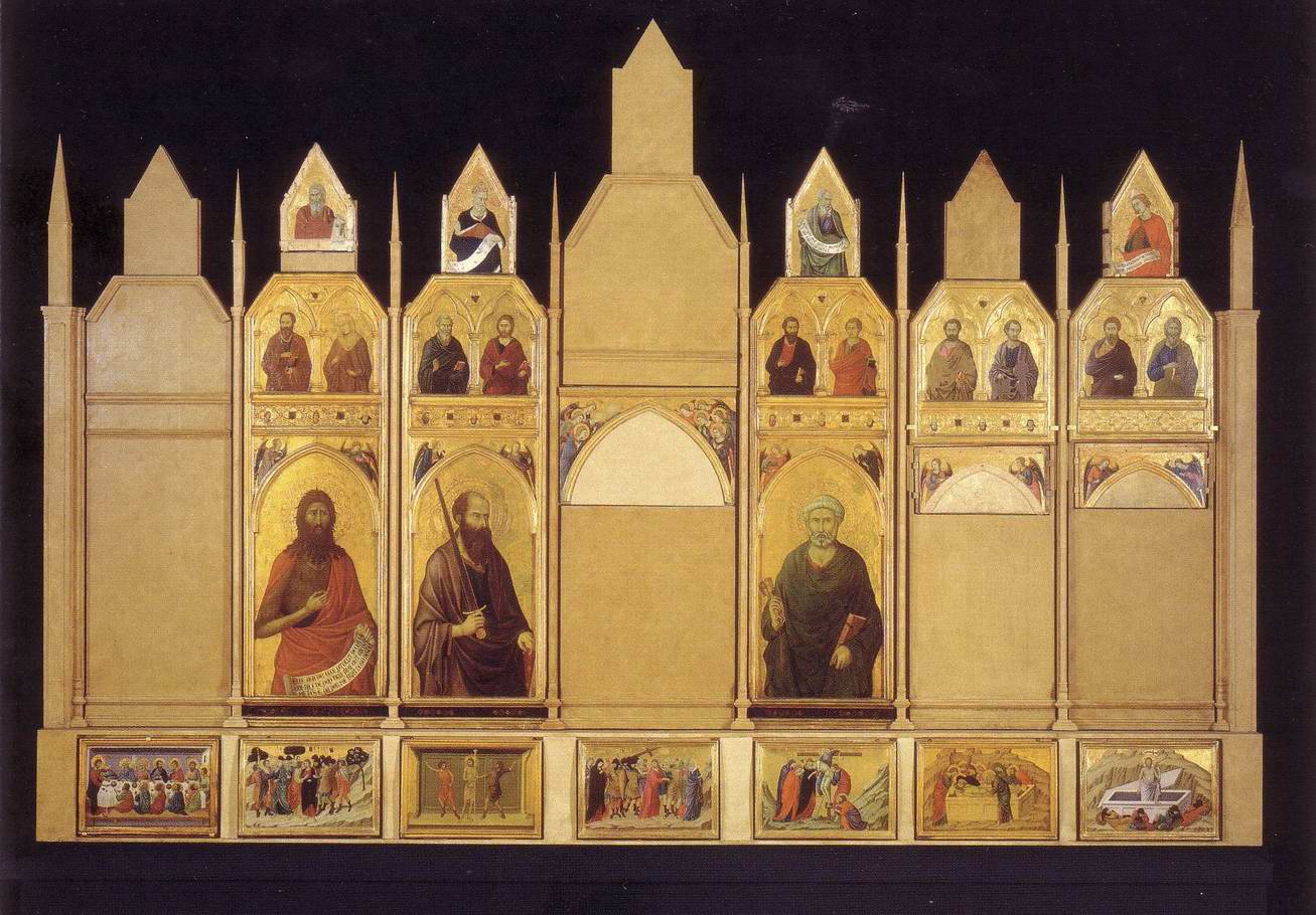 Der Sieneser Maler Ugolino di Nerio (vor 1295 – 1337/47) schuf 1325/26 die Bilder des Altars, dessen noch vorhandene Bildtafeln heute außer in Berlin in vier weiteren Städten zu sehen sind.