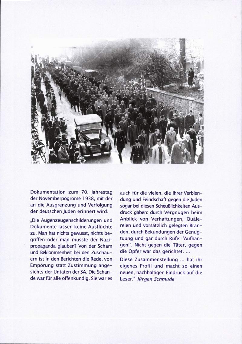 13. Hingesehen – weggeschaut. Die Novemberpogrome 1938 in Augenzeugenberichten (Publikation)